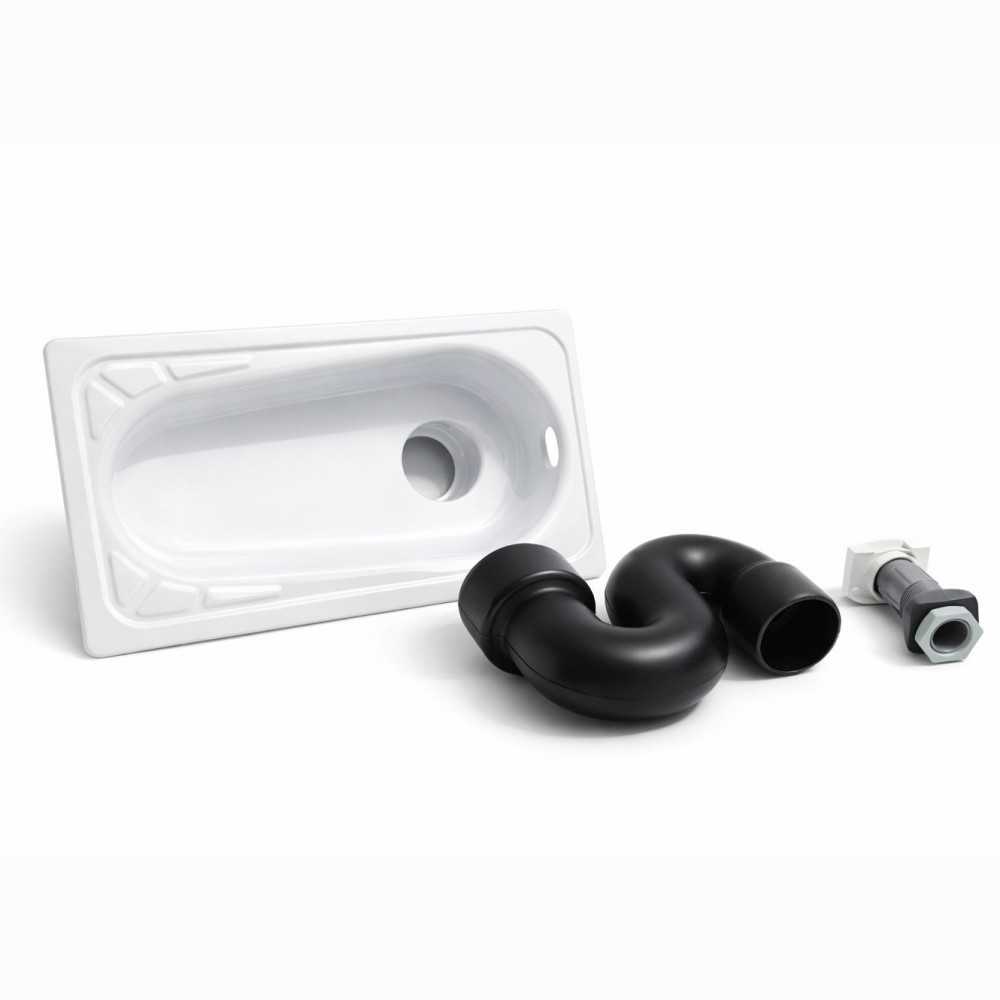 Чаша Генуя стальная эмаль Сантэкс со смещенным сливом в комплекте с сифоном и рассекателем