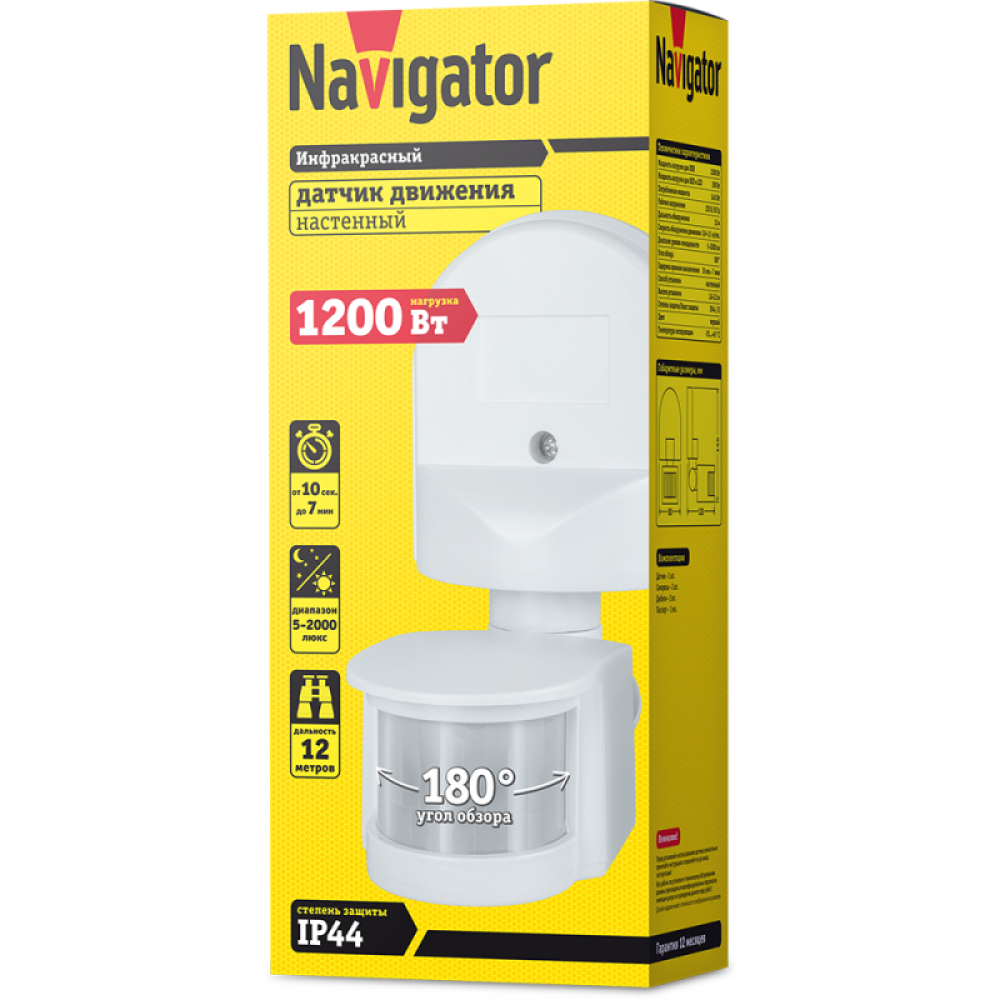 Технические характеристики Датчик движения инфракрасный 71 965 NS-IRM04-WH Navigator 71965