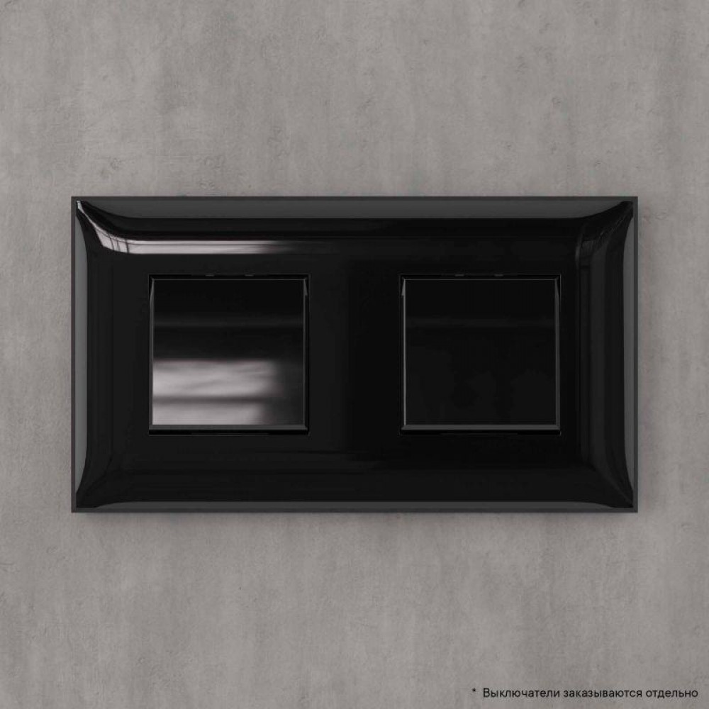 Рамка имеет 2 места под электроустановочные изделия (максимальная вместимость – 4 модуля), может размещаться как горизонтально, так и вертикально. Габаритные размеры: 160х90 мм. Материал – термопласт.