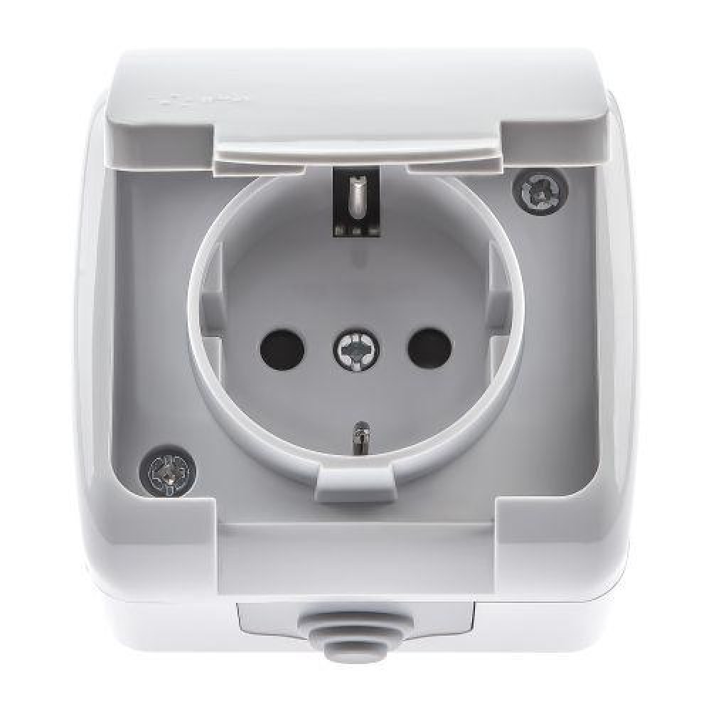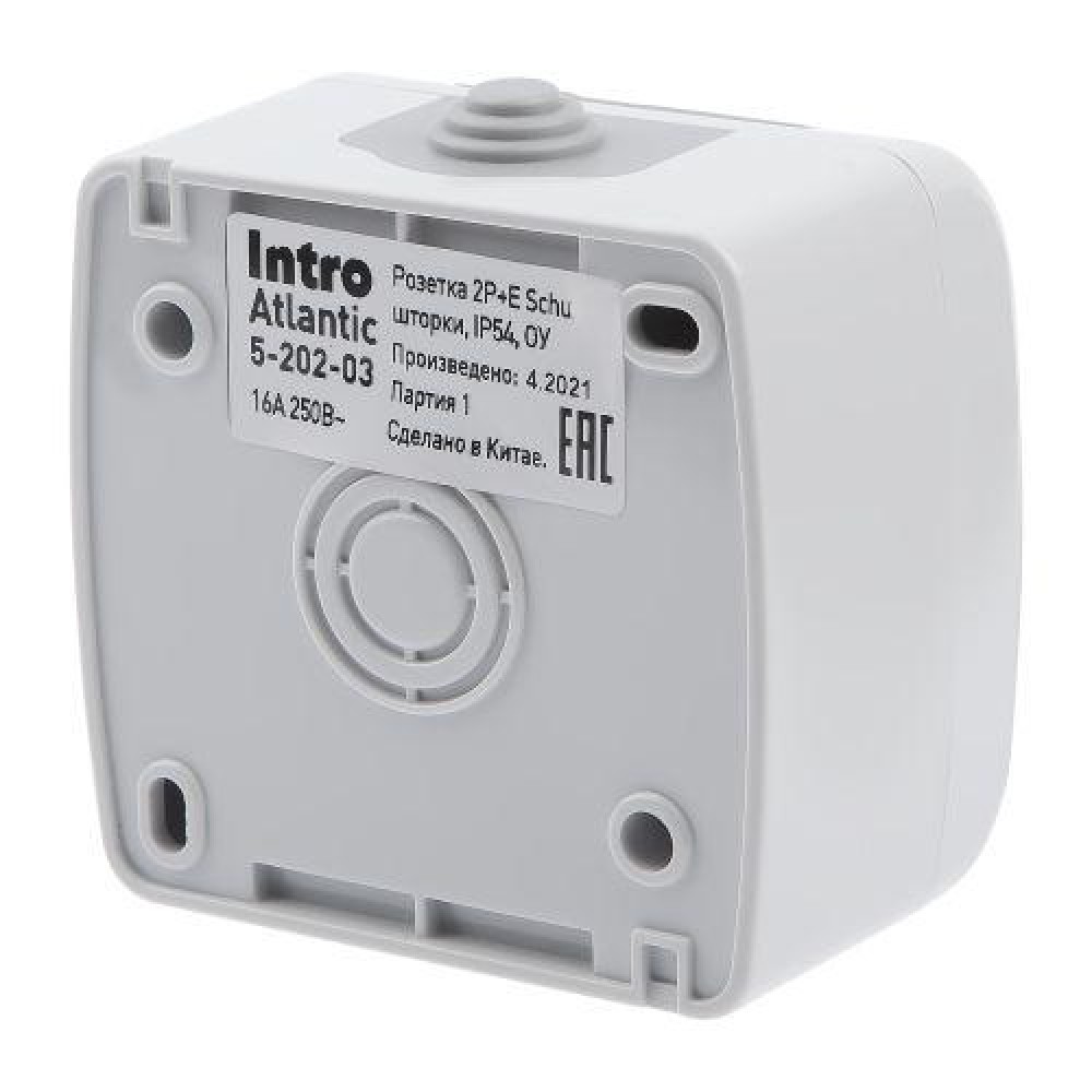 Розетка 1-м ОП Atlantic 5-202-03 16А IP54 250В 2P+E Schuko с заземл. защ. шторки сер. Intro Б0050946