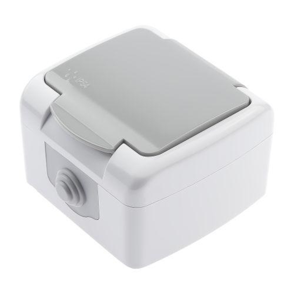Розетка 2P+E Schuko шторки, 16А-250В, IP54, ОУ, Atlantic, серый