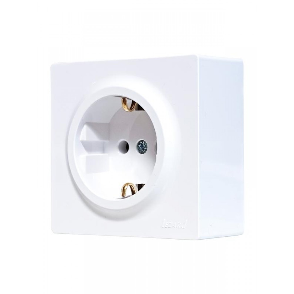 Розетка 1-м ОП LETO с заземл. ПБТ бел. LEZARD 752-0200-122B