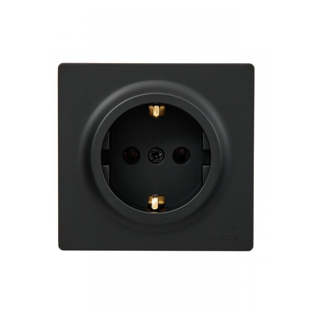 Розетка 1-м ОП LETO с заземл. ПБТ черн. бархат LEZARD 752-4200-122B
