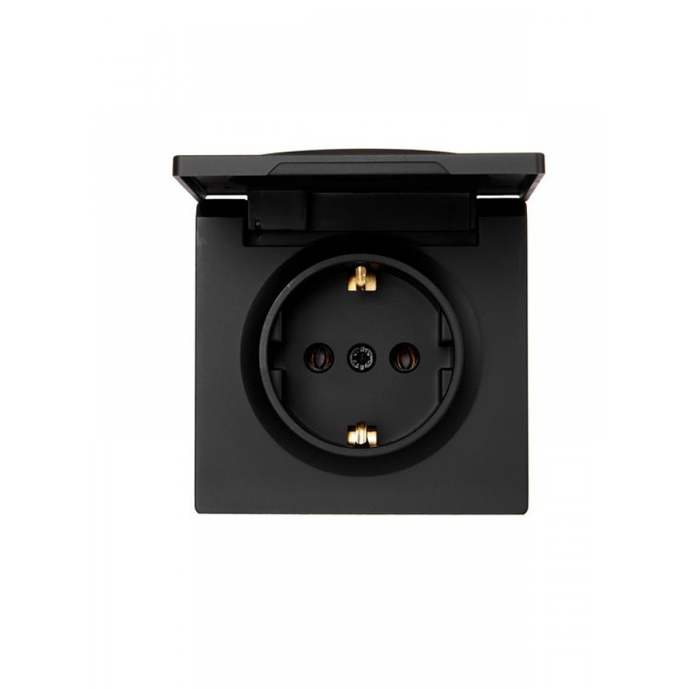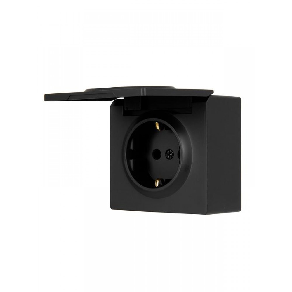 Розетка 1-м ОП LETO с заземл. с крышкой LETO ПБТ черн. бархат LEZARD 752-4200-123B