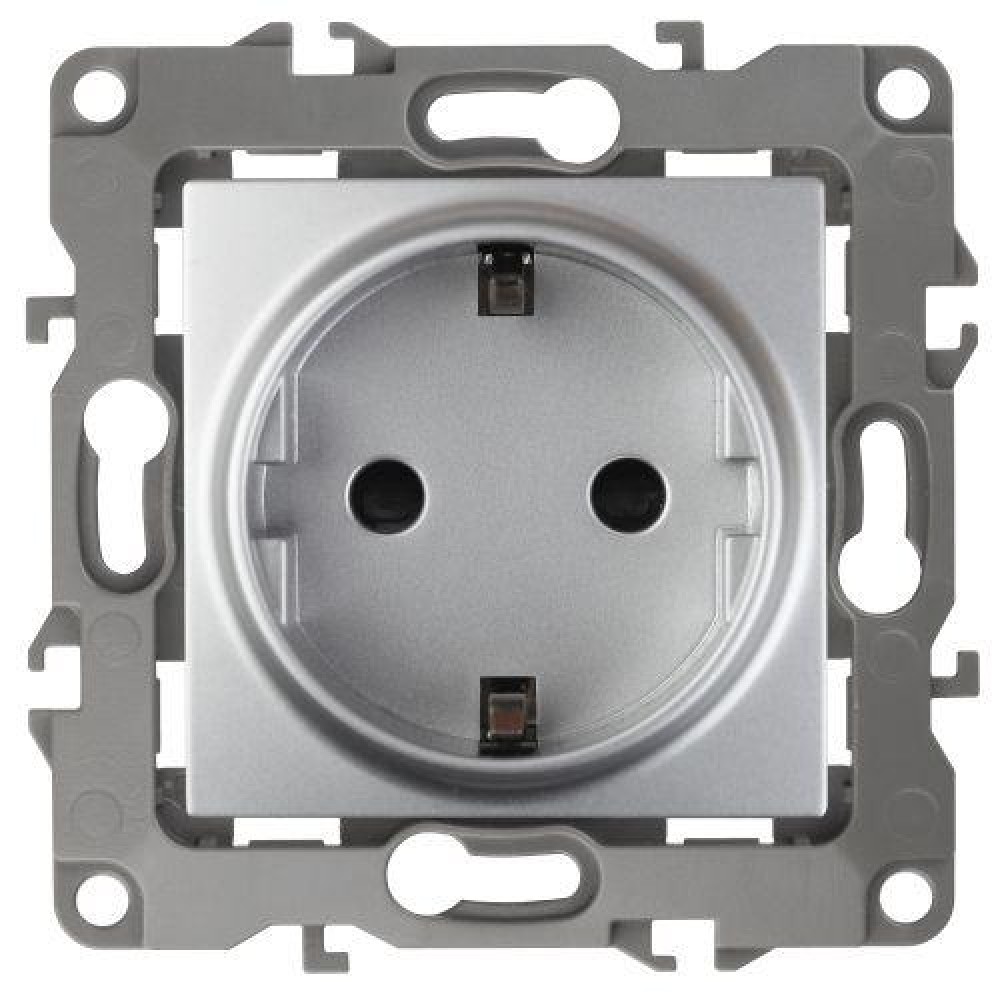Розетка с заземлением со шторками серии Эра 12 скрытой установки механизм цвет алюминий 12-2102-03. Номинальные хар-ки 16А 250В . Сделана из поликарбоната, оснащёна автоматическими клеммами для быстрй и надёжной фиксации жил кабеля в механиме. Парные клеммы обеспечивают соединение шлейфом. Монтаж в подрозетник производится и на лапки, и на винты. Рамки приобретаются отдельно.