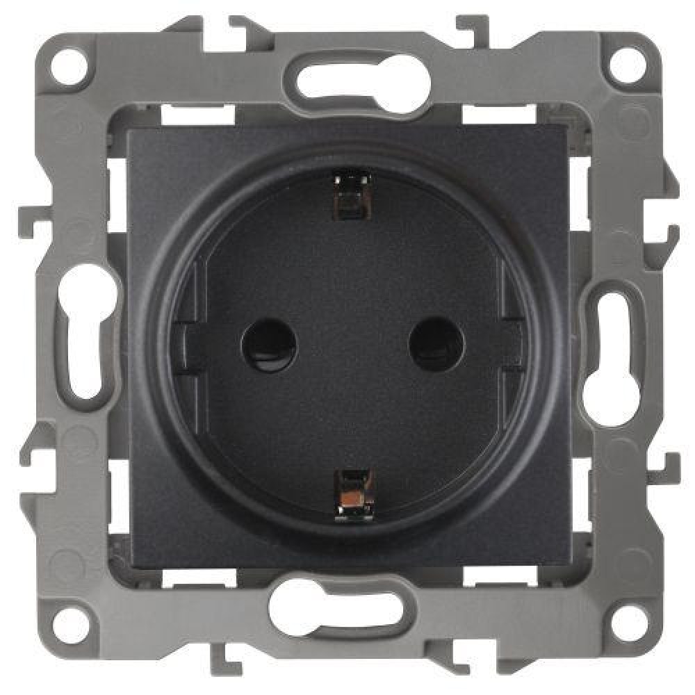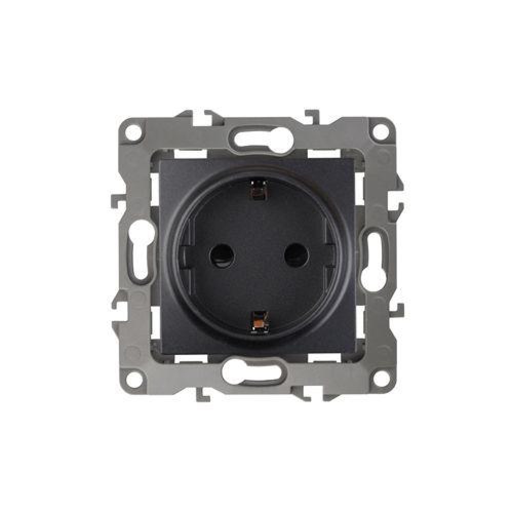 Розетка 1-м СП Эра12 12-2102-05 16А IP20 16AX 250В 2P+E Schuko защ. шторки механизм антрацит Эра Б0014691
