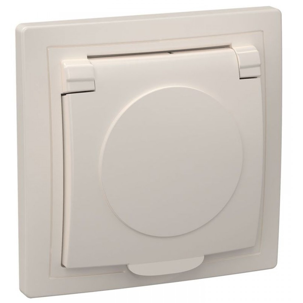 Розетка 1-м СП Кварта РСб10-3-ККм 16А IP20 с заземл. с крышкой крем. GENERICA ERK15-K33-16-DM