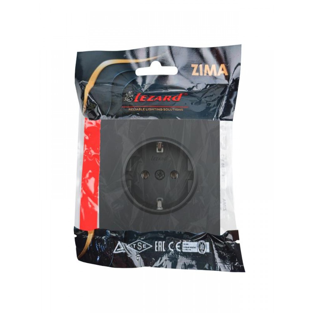 Розетка 1-мест. с/з ПБТ СП ZIMA IP20 16А безвинт. зажим черн. бархат LEZARD 704-4288-122BQC