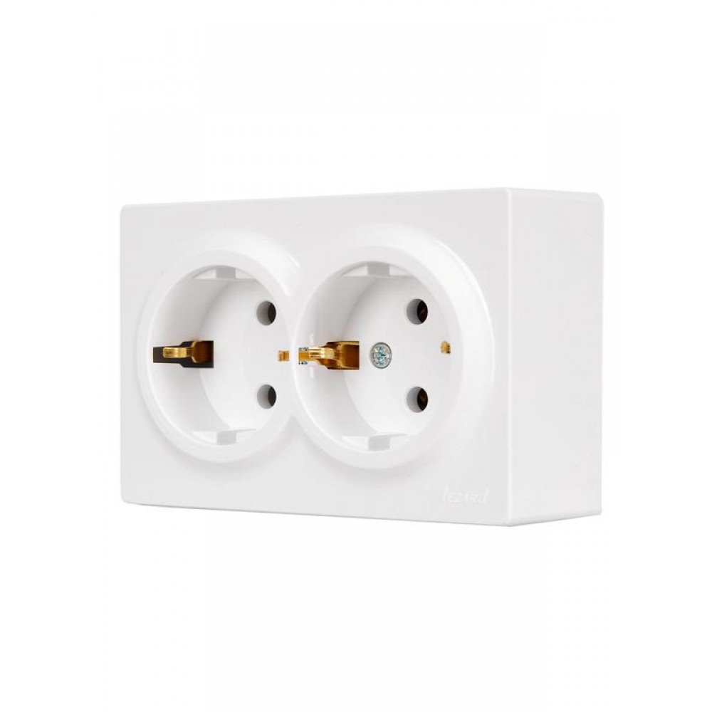 Технические характеристики Розетка 2-м ОП LETO с заземл. закрытый корпус ПБТ бел. LEZARD 752-0200-127B