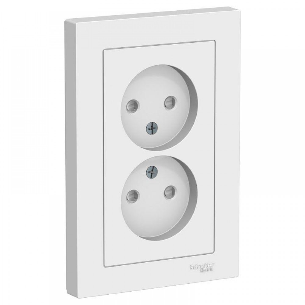 Розетка двойная Systeme Electric (ранее Schneider Electric) серии AtlasDesign (в сборе, цвет белый) без заземления со шторками подходит для сетей 250 В, на ток 16 А. - Пластик с ионами серебра в белом цвете обеспечивает антибактериальный эффект. - Лицевые детали из качественного ABS-пластика, устойчивого к царапинам и УФ-излучению. - Двойная розетка позволяет подключить два устройства в одном месте. - Изделие поставляется в комплекте с рамкой того же цвета.