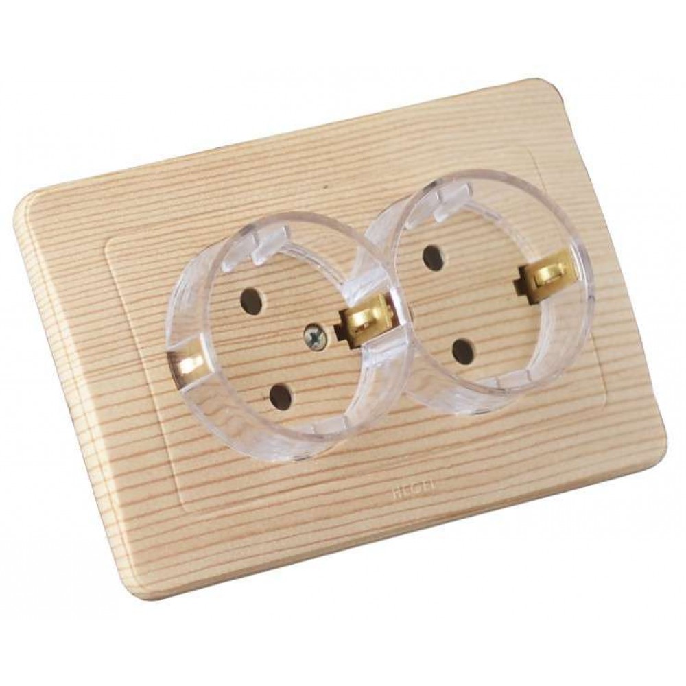 Розетка 2-м СП Мастер 16А IP20 250В с заземл. защ. шторки (стакан) сосна HEGEL РС16-382-02