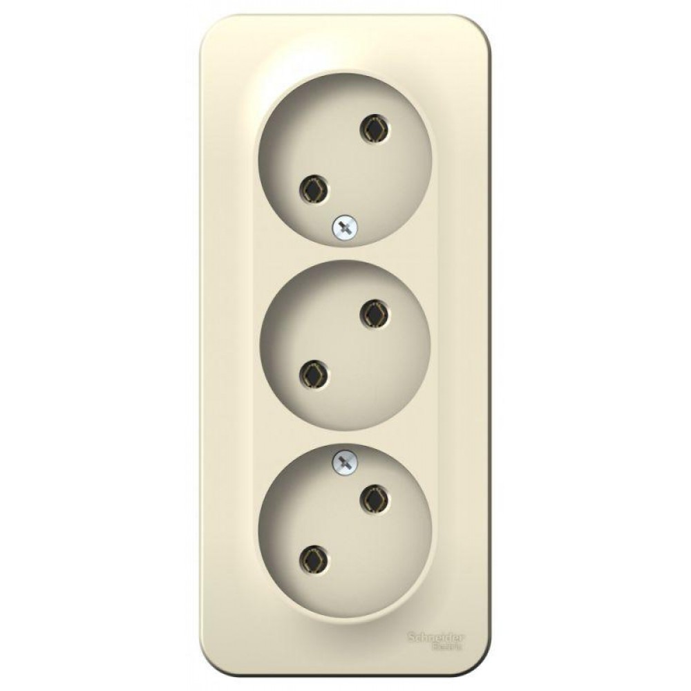 Розетка Systeme Electric (ранее Schneider Electric) BLANCA (молочный, открытой установки) трехместная, без шторок и заземления, с изолирующей пластиной предназначена для сетей до 250В, на ток до 16А. Трехместная розетка позволяет подключить три устройства в одном месте. Она изготовлена из ABS-пластика, проста в установке и удобна в применении.