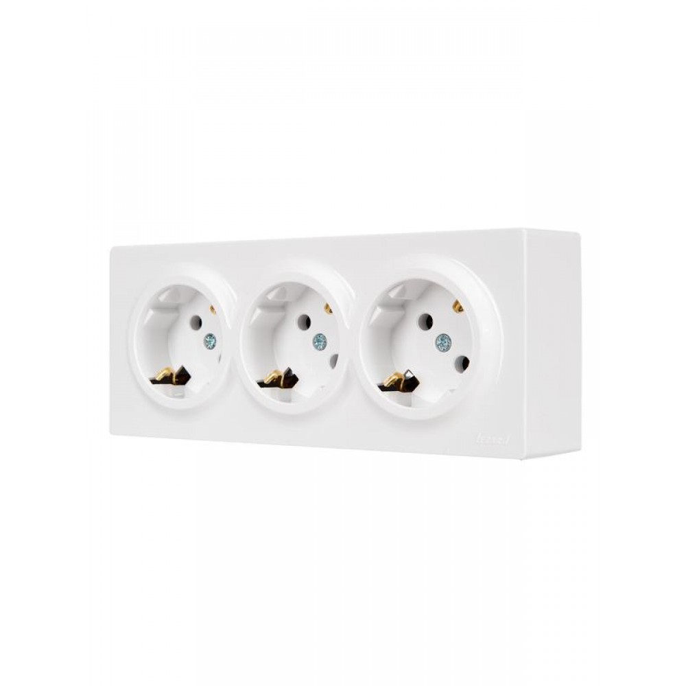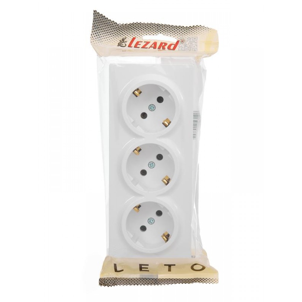 Технические характеристики Розетка 3-м ОП LETO с заземл. закрытый корпус ПБТ бел. LEZARD 752-0200-127BUP