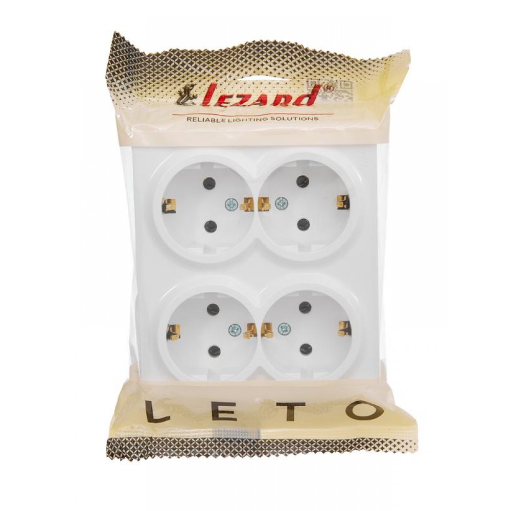 Розетка 4-м ОП LETO с заземл. закрытый корпус ПБТ бел. LEZARD 752-0200-127BDP