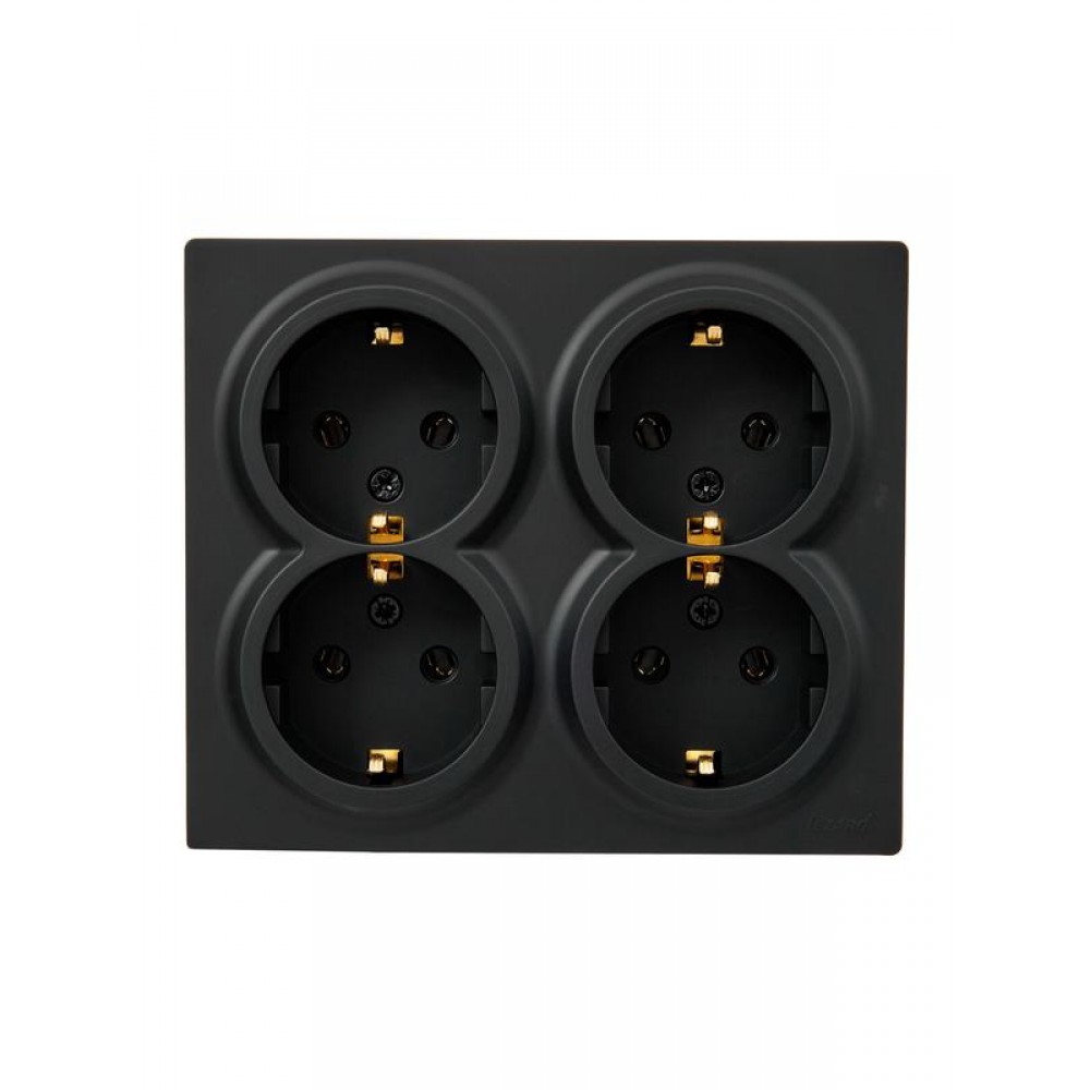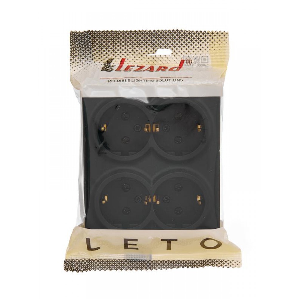 Розетка 4-м ОП LETO с заземл. закрытый корпус ПБТ черн. бархат LEZARD 752-4200-127BDP