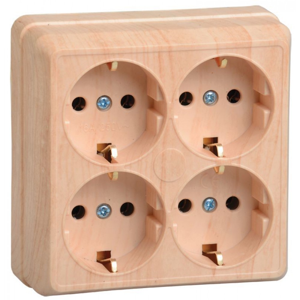 • Розетка 4-м ОП Октава РС24-3-ОС 16А IP20 с заземл. сосна GENERICA ERO41-K03-16-DC