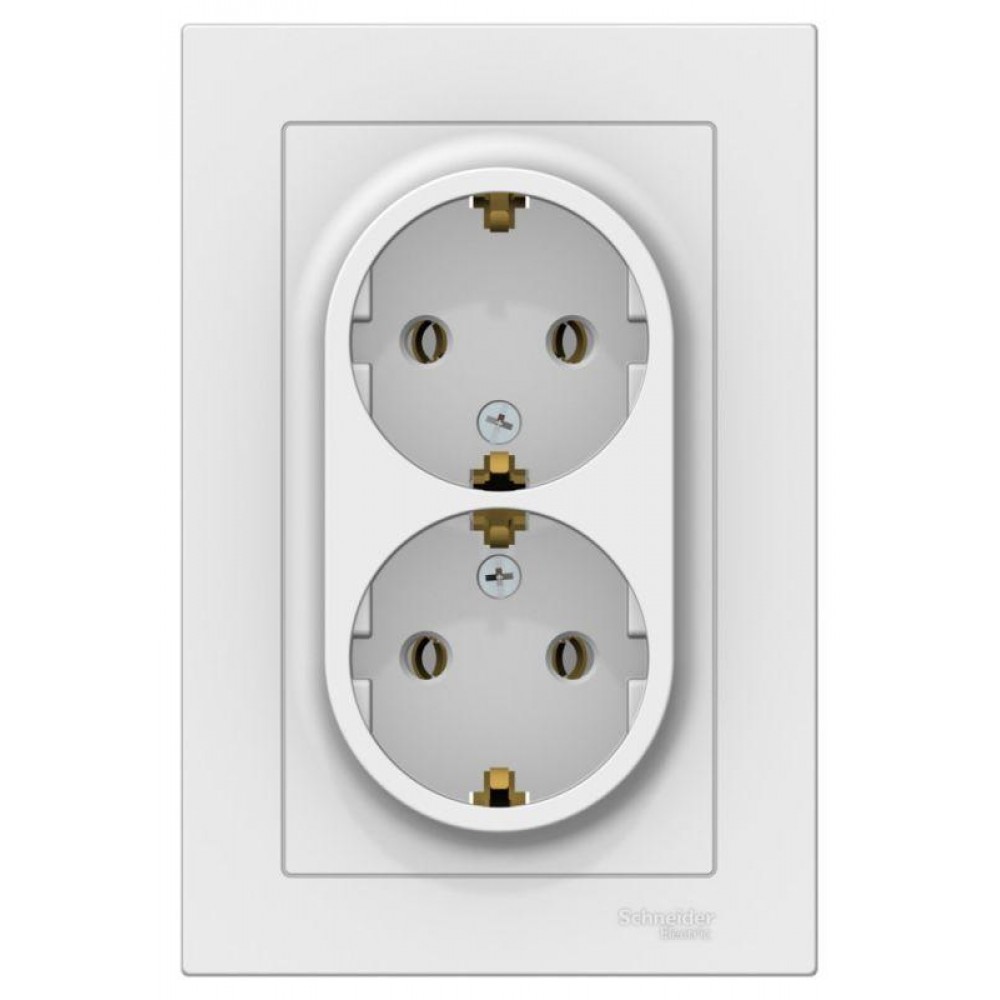 Розетка двойная Systeme Electric (ранее Schneider Electric) серии AtlasDesign (в сборе, цвет ЛОТОС) с заземлением, без шторок подходит для сетей 250 В, на ток 16 А.
