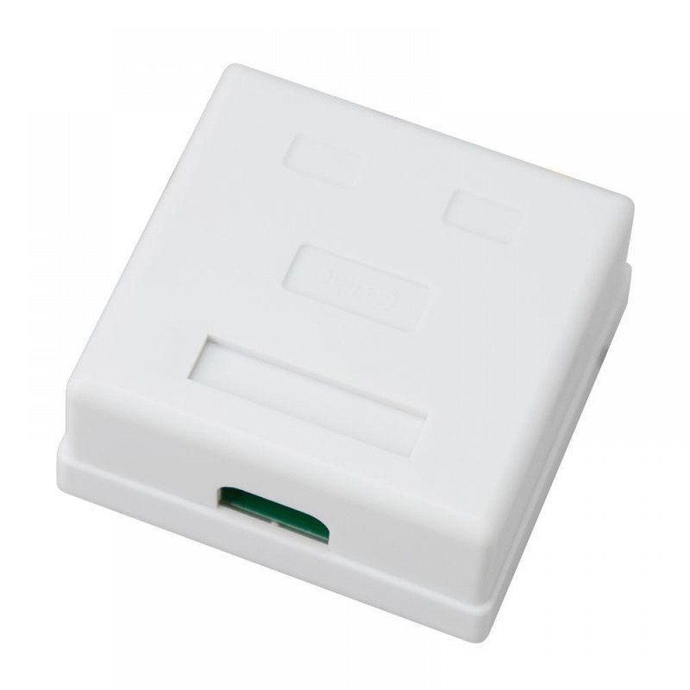 Устройство оснащено портом RJ-45 категории 5е и портом RJ-11 под разъем 6Р-4С. Кабель фиксируется с помощью IDC разъемов (самозажимной контакт с прорезанием изоляции). Розетка устанавливается на стену накладным способом. Порты расположены с торца.