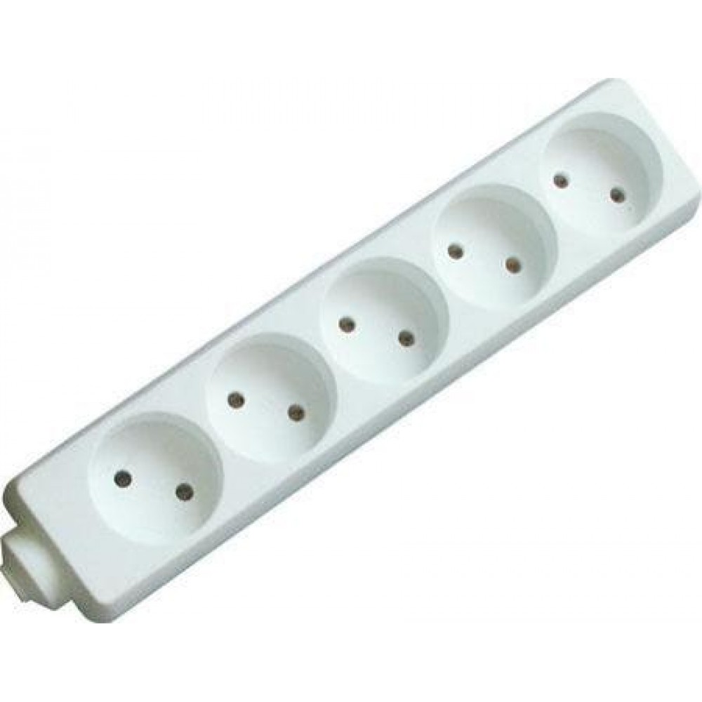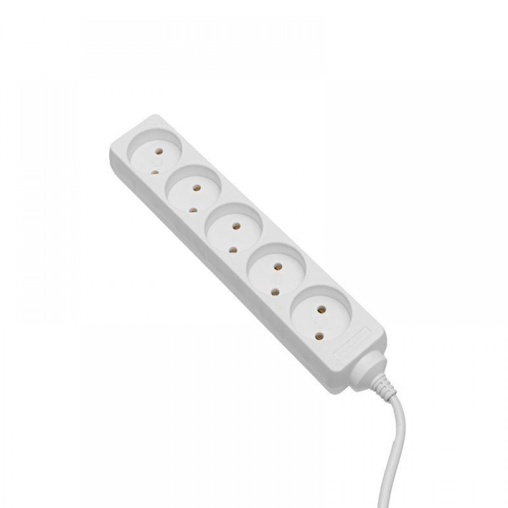 Удлинитель бытовой без заземления, розетки, шт. - 5, длина провода, м - 5, цвет - белый, провод - ПВС 2х0,75, номинальная сила тока, А - 10, макс.мощность, Вт - 2200