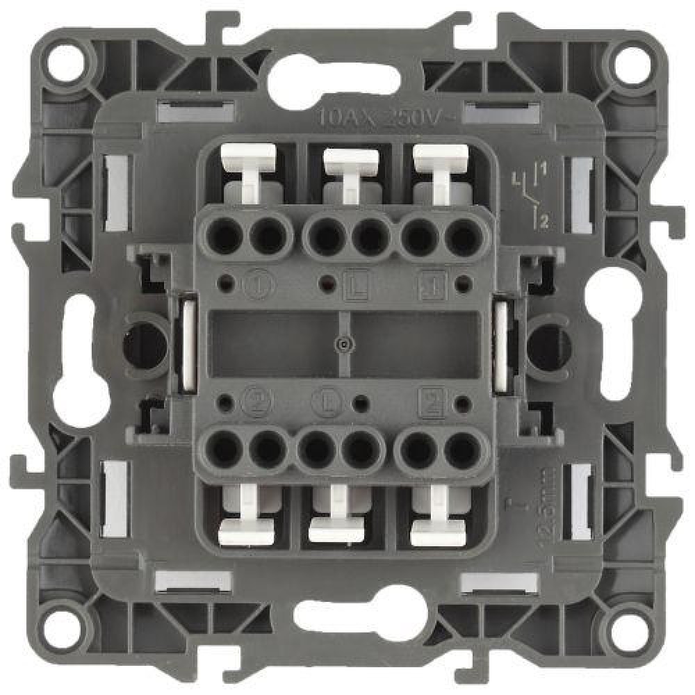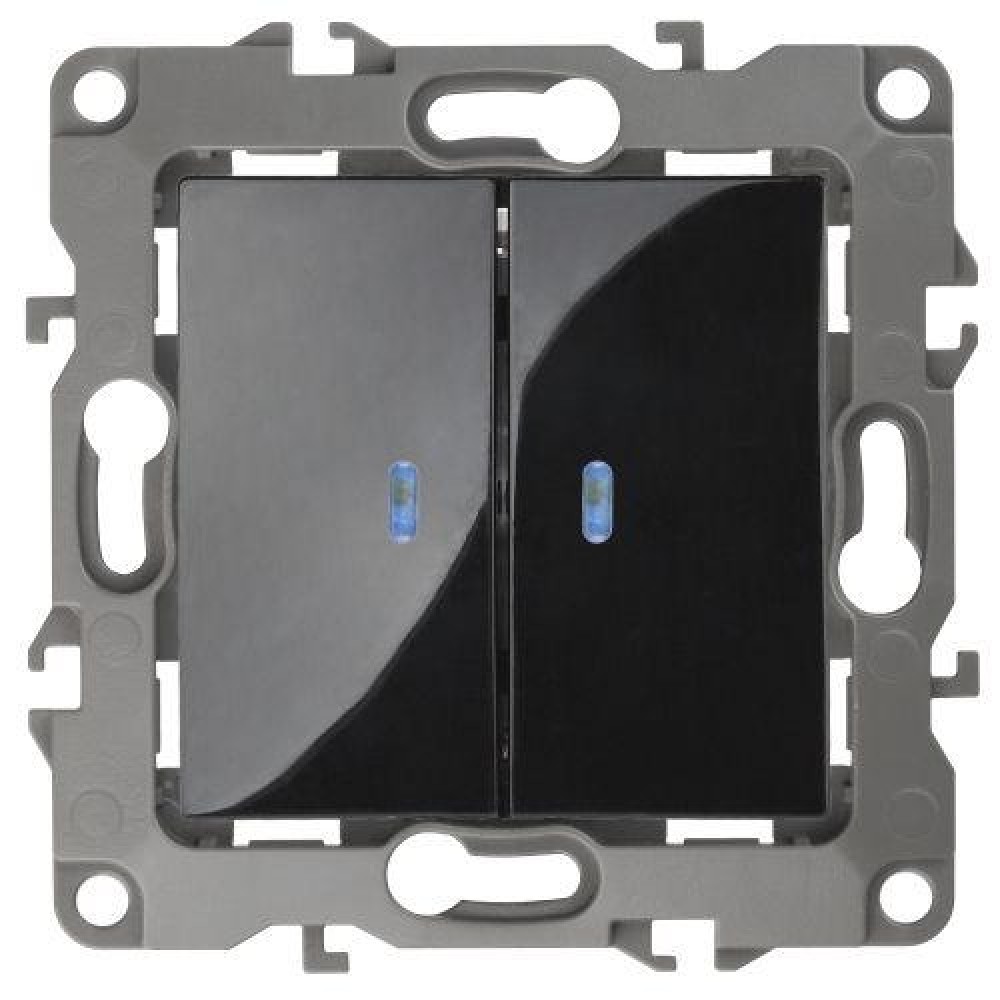 Выключатель 2-клавишный проходной серии Эра 12 скрытой установки механизм цвет чёрный 12-1106-06. Номинальные характеристики 10А 250В . Сделан из поликарбоната, оснащёно автоматическими клеммами для быстрй и надёжной фиксации жил кабеля в механиме. Парные клеммы обеспечивают соединение шлейфом. Монтаж в подрозетник производится и на лапки, и на винты. Рамки приобретаются отдельно. Рамки Эра 12: 1 пост 12-5001-хх, 2 поста 12-5002-хх, 3 поста 12-5003-хх, 4 поста 12-5004-хх, 5 постов 12-5005-хх. Рамки Эра 12 Сатин: 1 пост 12-5101-хх, 2 поста 12-5102-хх, 3 поста 12-5103-хх, 4 поста 12-5104-хх, 5 постов - 12-5105-хх (хх - код цвета: 01-белый, 02-слоновая кость, 03-алюминий, 04-шампань, 05-антрацит, 06-чёрный, 07-ольха(белёный дуб-сатин), 08-вишня, 09-дуб, 10-венге, 11-сосна, 21-жёлтый, 22-оранжевый, 23-красный, 24-охра, 25-бордо, 26-лайм, 27-зелёный, 28-голубой, 29-синий).