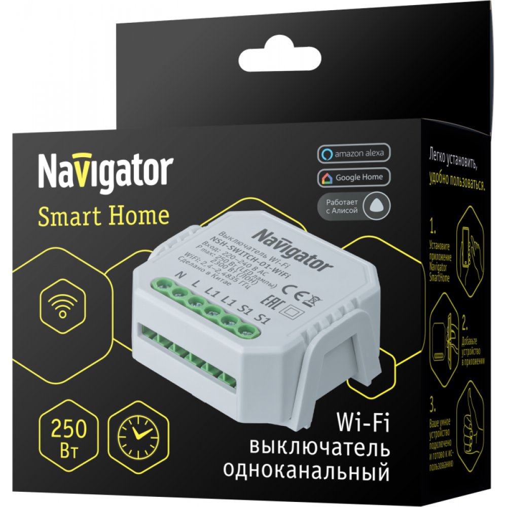 Переключатель одноканальный 82 632 Smart Home NSH-SWITCH-01-WiFi с управлением по Wi-Fi NAVIGATOR 82632