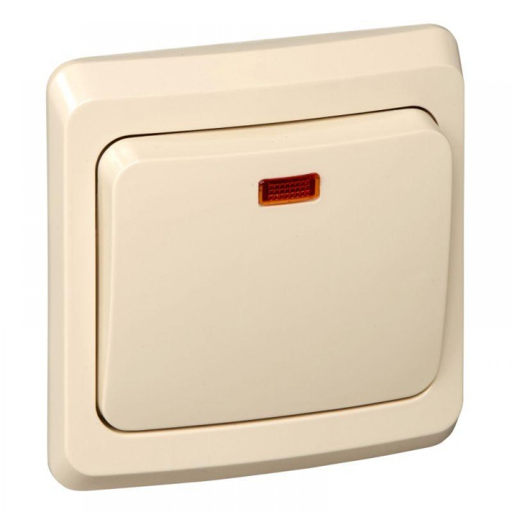 Переключатель проходной 1-кл. СП Этюд 10А IP20 с подсветкой крем. SE BC10-007K