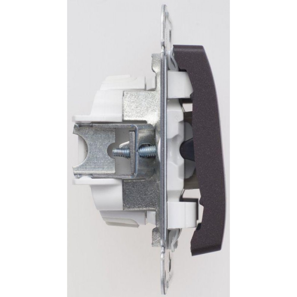 Механизм Systeme Electric (ранее Schneider Electric) серии Glossa (цвет шоколад) переключателя 1-клавишного подходит для сетей 250 В, на ток 10 А. Переключатель позволяет управлять одним источником света с двух точек. Выполнен из материала PС+ASA, стойкого к УФ-излучению и появлению царапин. Эргономичные клеммы расположены в два ряда: сверху и снизу.