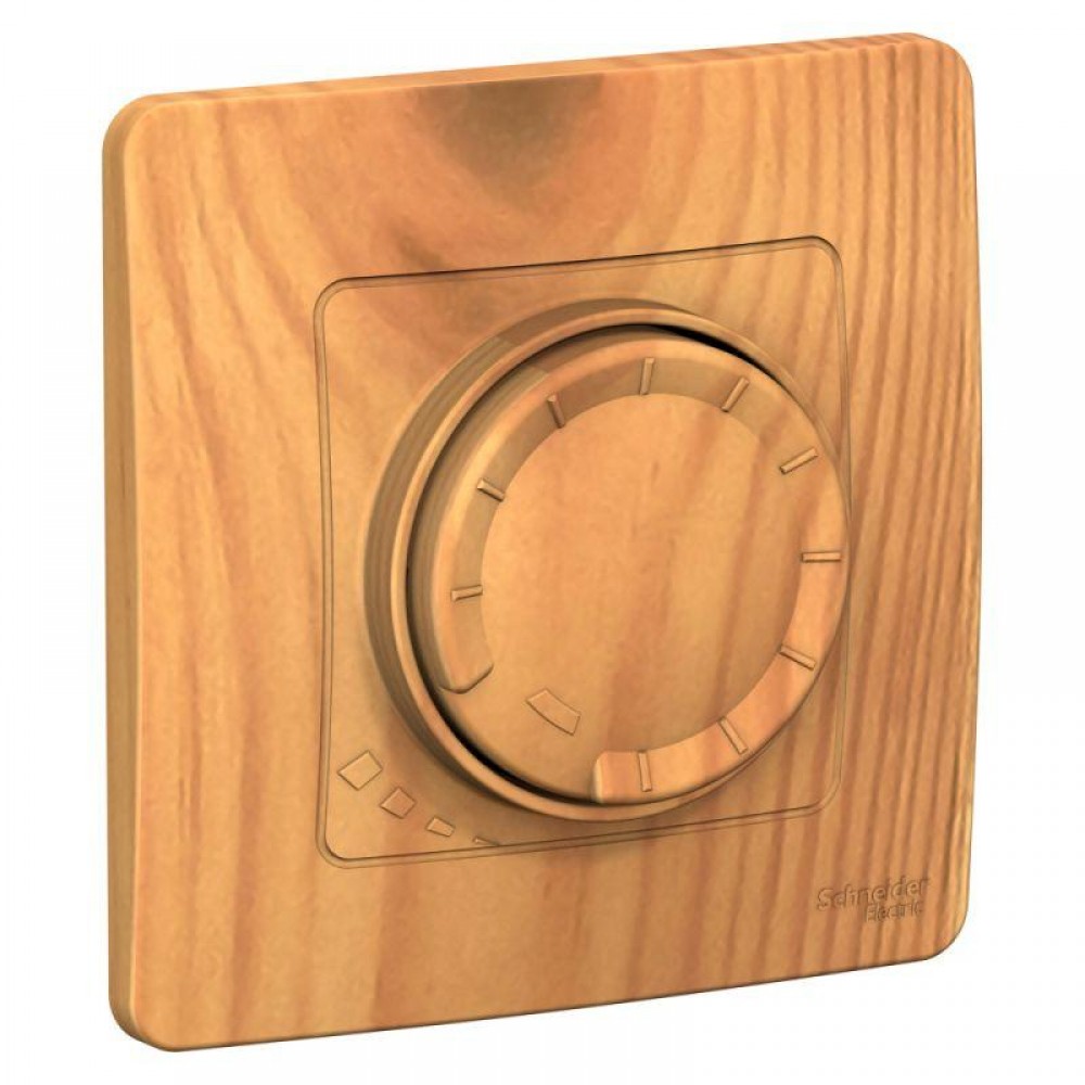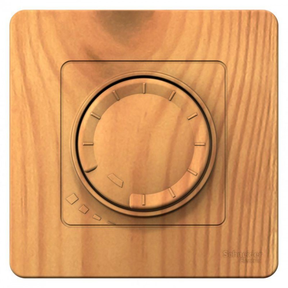 Светорегулятор (диммер) Systeme Electric (ранее Schneider Electric) BLANCA (ясень, скрытой установки) поворотно-нажимной универсальный предназначен для сетей 230В, потребление 5-150Вт для светодиодных ламп и 10-400Вт для ламп накаливания и галогенных. Изделия цвета Ясень обладают уникальным рисунком, напоминающим древесный сруб. Диммер изготовлен из ABS-пластика, прост в установке и удобен в применении.
