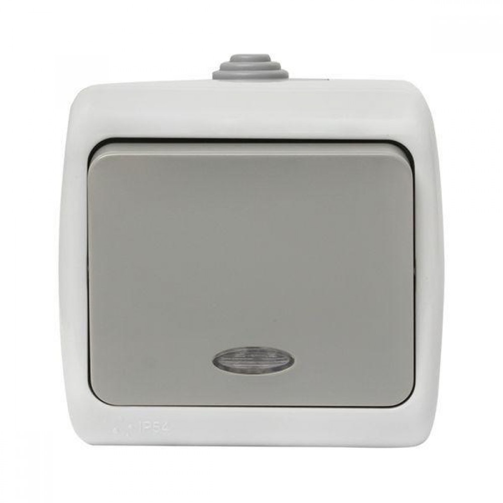 Выключатель 1-кл. ОП Мурманск 10А IP54 с индикатором сер. EKF EFV10-121-30-54