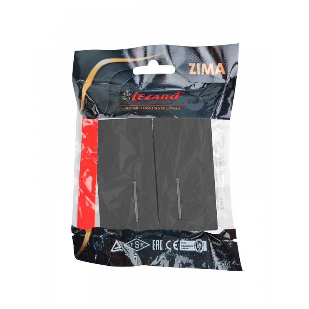 Выключатель 2-кл. с индик. СП ZIMA IP20 10А безвинт. зажим черн. бархат LEZARD 704-4288-112QC
