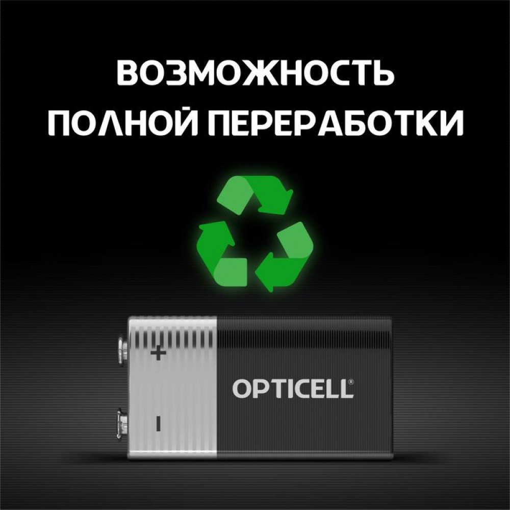 Батарейки базовой линейки Opticell размера 9V — надежный источник питания для часто используемых устройств, нуждающихся в дополнительной мощности, таких как механизированные игрушки, фонарики, портативные игровые консоли, пульты дистанционного управления и т. д. Работают намного дольше!* (*по сравнению с обычной солевой батарейкой формата 9V. Результаты могут варьироваться от устройства). Срок хранения до 10 лет** (**сохраненяет заряд пока батарейка не используется при нормальных условиях хранения). Защита от протекания Не содержит тяжелых металлов Работает намного дольше! Возможность полной переработки
