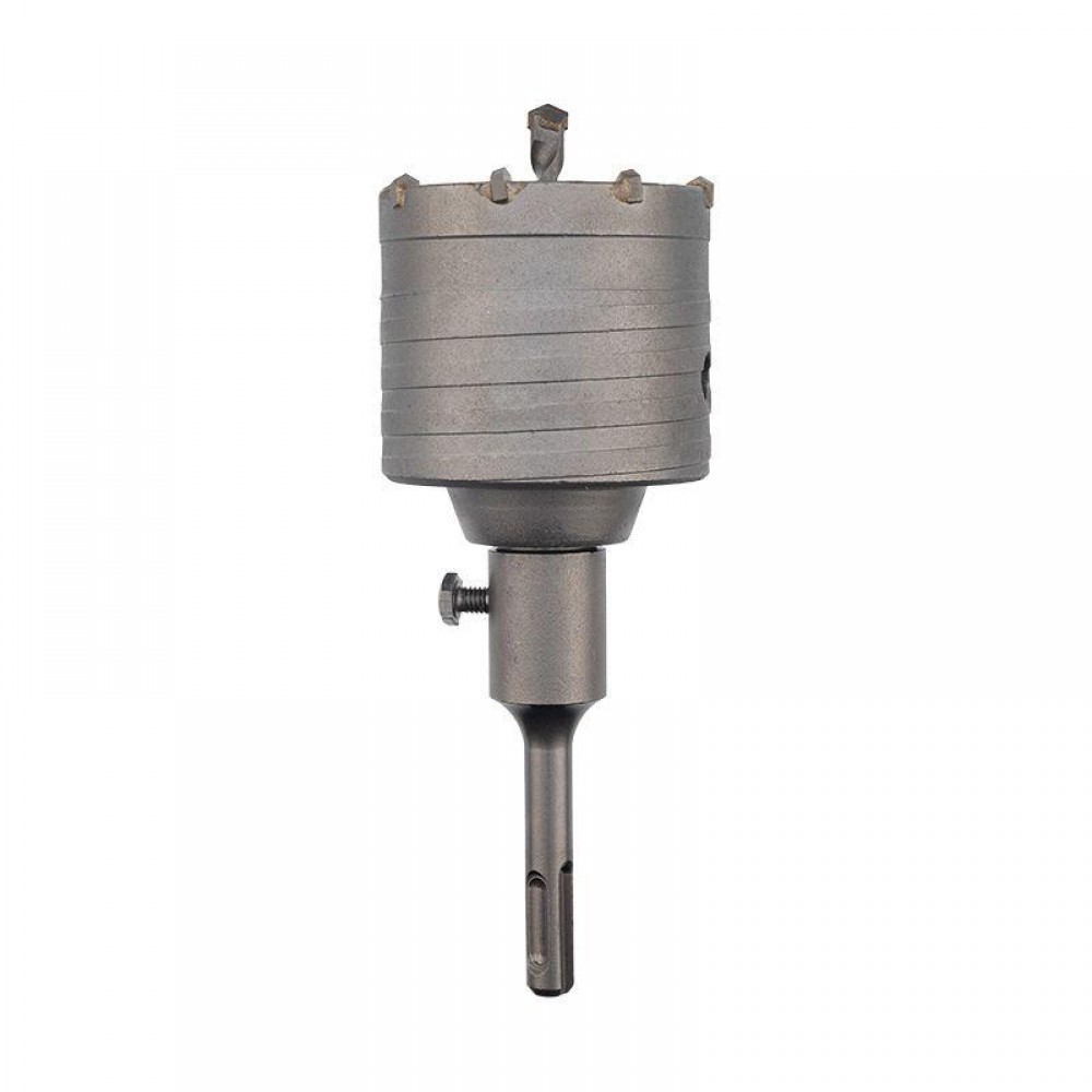 Коронка по бетону предназначена для сверления отверстий под трубы, розетки и выключатели в поверхностях из бетона, гранита, кирпича и камня при помощи перфораторов с патроном SDS PLUS.
