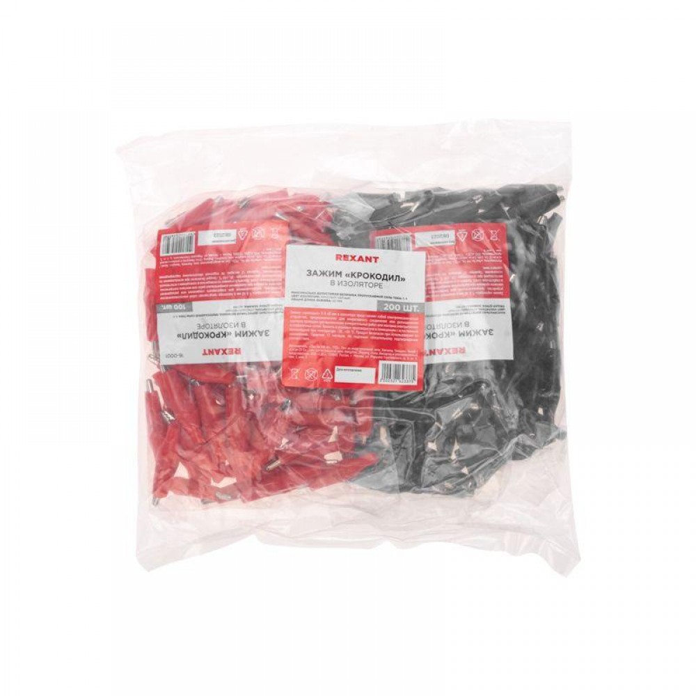 Зажим «крокодил» – это электромеханическое устройство, предназначенное для оперативного соединения или разъединения контакта проводов при выполнении измерительных работ или при монтаже электрических и слаботочных сетей. Зажим состоит из двух деталей с зубцами, которые в середине скреплены специальным штифтом и могут вращаться вокруг оси соединения под определенным углом. К одной из деталей монтируется контактный провод. Сжатие частей обеспечивается пружиной, вставленной с другой стороны штифта. Контактная часть зажима изготавливается из стали с никелированным покрытием. Для обеспечения безопасного использования предусмотрена изоляция, изготовленная из ПВХ, которая исключает случайный контакт с другими токоведущими частями и защищает от поражения электрическим током. Конструкция изделия проста и надежна, что гарантирует долгий срок службы без потери функциональных свойств. Цена указана за штуку. В упаковке поставляется 200 зажимов (100 красных и 100 черных). Минимальная партия отгрузки – 1 упаковка.