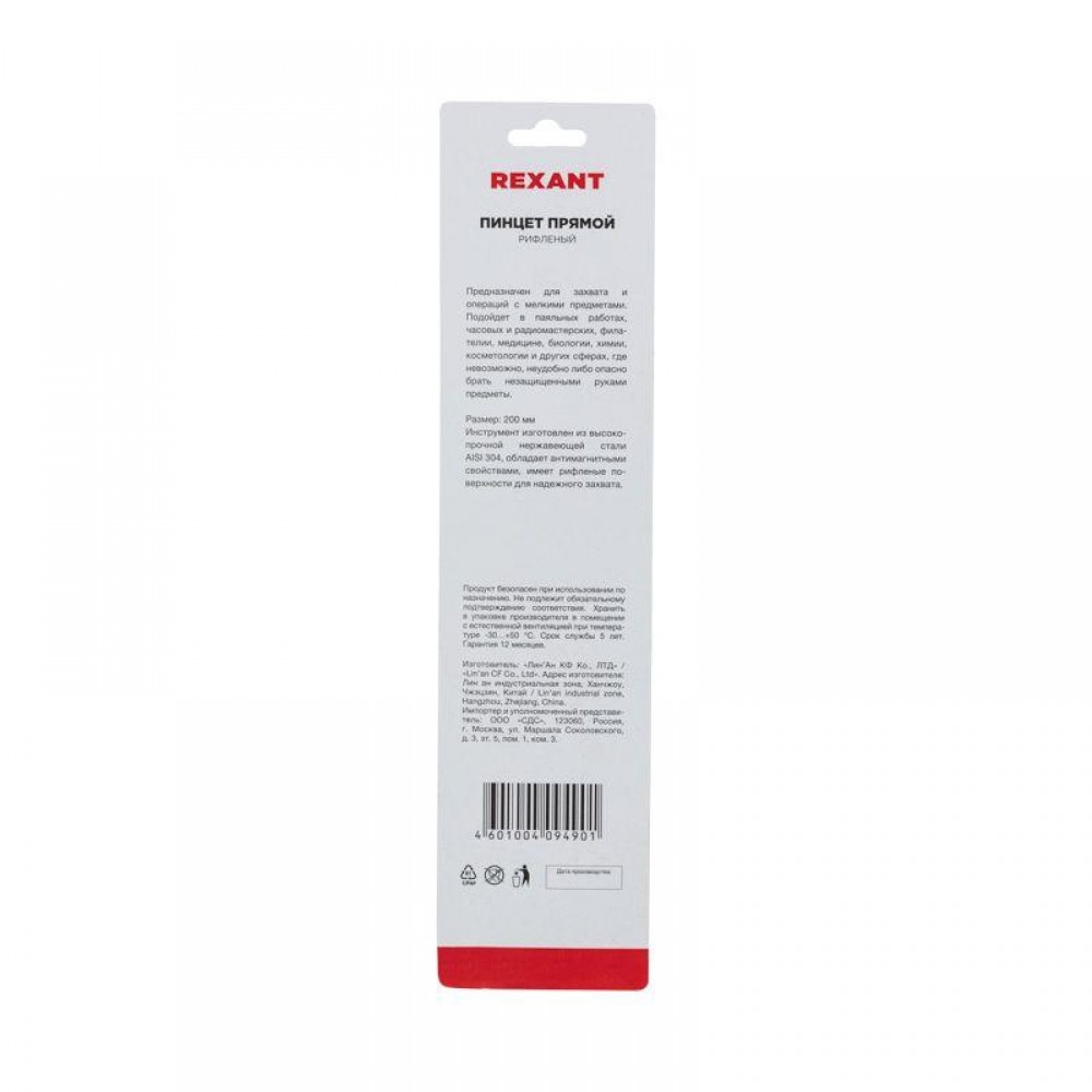 Пинцет прямой рифленый 200мм (блист.) Rexant 12-0368