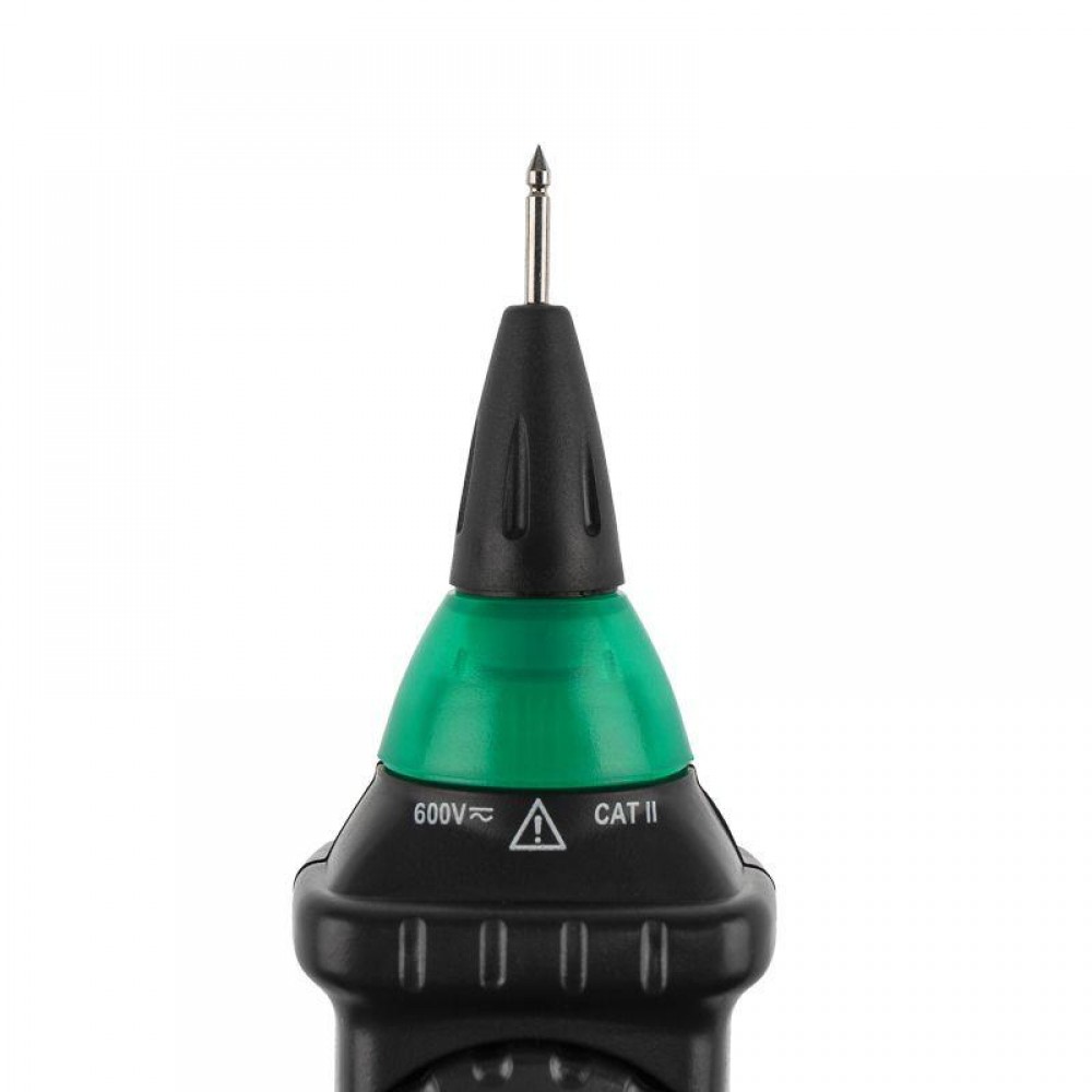 Цифровой мультиметр MASTECH MS8211 — прибор 2 в 1 - тестер напряжения и мультиметр, позволяющий измерять постоянное и переменное напряжение, сопротивление. Имеет режим «прозвонка», диод-тест. Особенность этого мультиметра заключается в наличии бесконтактного датчика напряжения (NCV) с регулировкой чувствительности. Мультиметр имеет звуковую и световую индикацию. Модель работает от 2 батареек 1.5 В ААА. Характеристики: Максимальное значение: 1999 Измерение постоянного напряжения: 200 мВ/2 В/20 В/200 В/600 В ±(0.7%+2) Измерение переменного напряжения: 200 мВ/2 В/20 В/200 В ±(0.8%+3); 600 В ±(1.0%+3) Измерение сопротивления: 200 Ом/2 кОм/20 кОм/200 кОм/2 МОм/20 МОм (±1%) Прозвонка цепей на проводимость звуковой сигнал при сопротивлении ниже 50 Ом Tест диодов Автоматическое отключение питания Удержание данных на дисплее DATA HOLD Защита от перегрузок Источник питания батарея 1,5 В (AAA) x 2 Габариты 208?38?29 мм Комплектация: Мультиметр-пробник MASTECH MS8211 (1 шт.) Тестовый щуп (1 шт.) Кейс (1 шт.) Батарея AAA (2 шт.) Инструкция по эксплуатации (1 шт.)