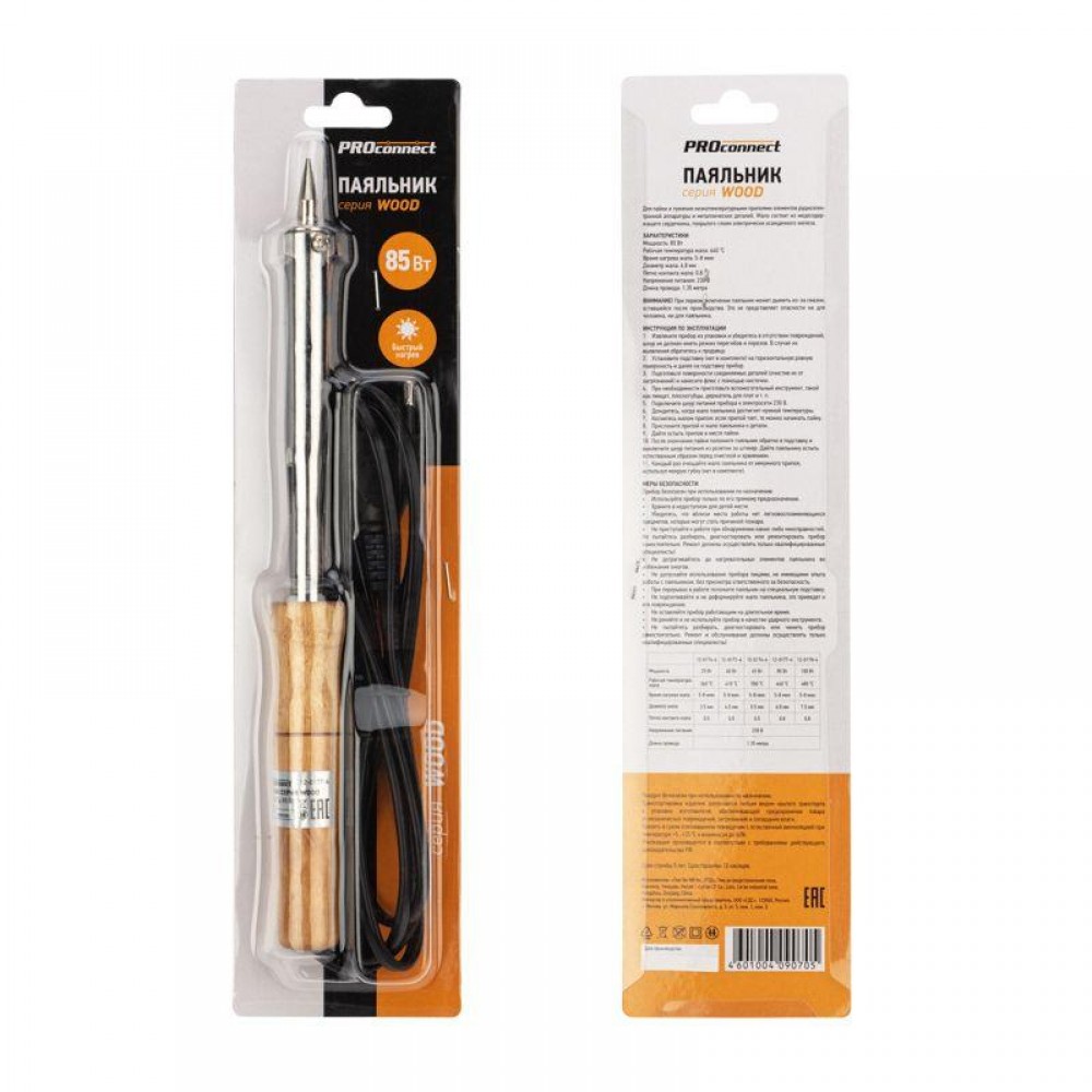 Технические характеристики Паяльник ПД 220В 85Вт деревянная ручка (блист.) PROCONNECT 12-0177-4