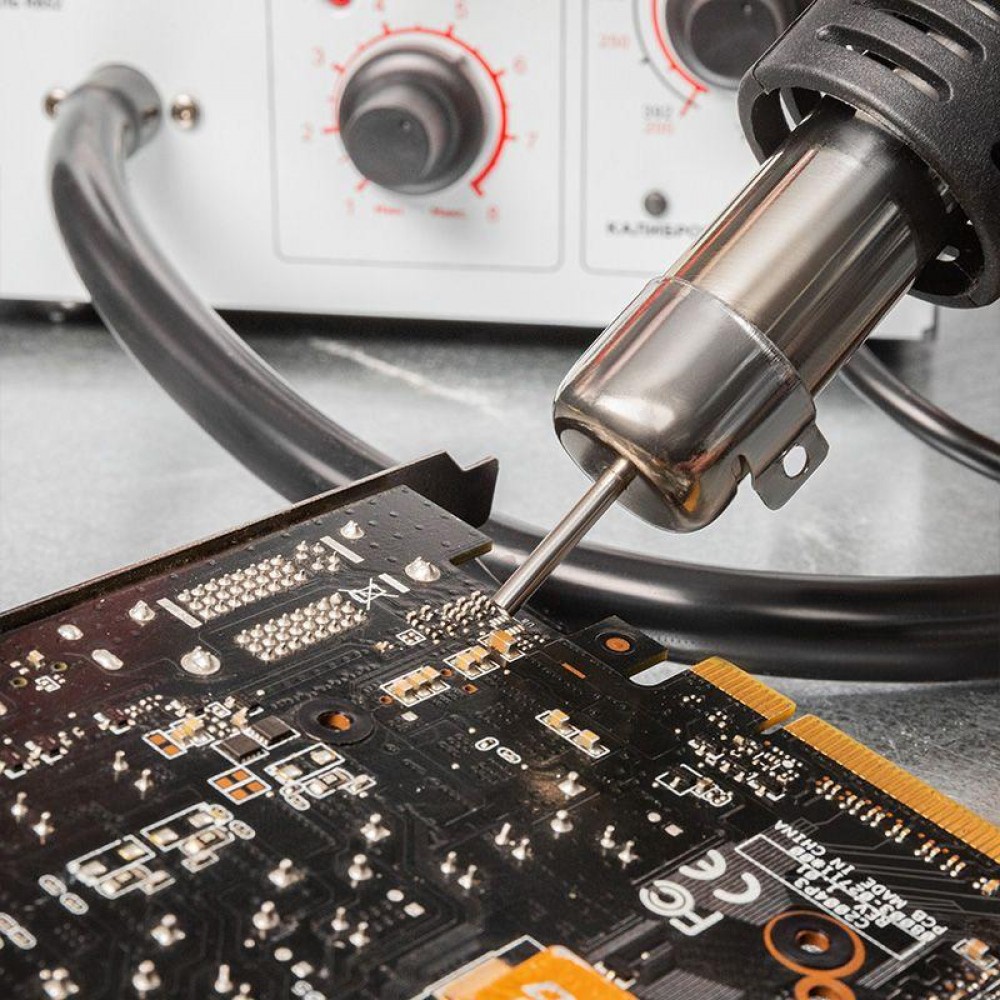Универсальная паяльная станция (R852) 2 в 1 с компрессорным феном и паяльником предназначена для демонтажа или пайки различных видов компонентов, таких как SOIC, PLCC, QFP, BGA и т. д. Прибор оснащен ручным регулятором рабочей температуры жала паяльника, фена и воздушного потока с аналоговой шкалой. Широкий диапазон рабочих температур позволяет применять паяльную станцию для работ различной сложности и в любых условиях. Устройство разогревается быстро и равномерно, а после выключения автоматически охлаждается. В комплектацию станции входят: основной блок, термофен, паяльник, держатель паяльника, держатель термофена, губка для очистки жала паяльника (в ложементе), 4 насадки для термофена разного размера (3мм, 5мм, 8мм, 10мм).