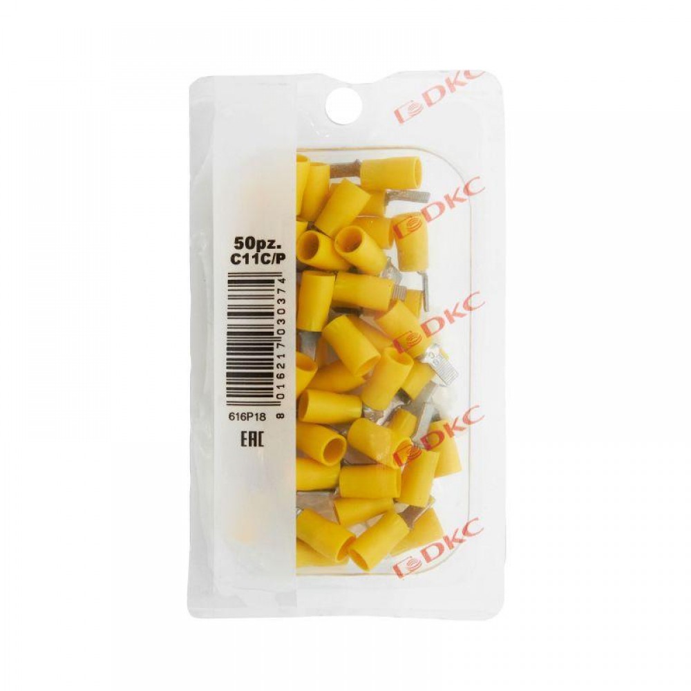 Технические характеристики Наконечник изол. штыревой плоский 2.5-6кв.мм А=3.9мм В=13мм желт. (уп.50шт) DKC 2C11P