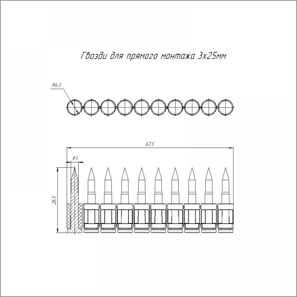 Технические характеристики Гвоздь усиленный для прямого монтажа 3х25 (уп.1000шт) Промрукав PR08.5810