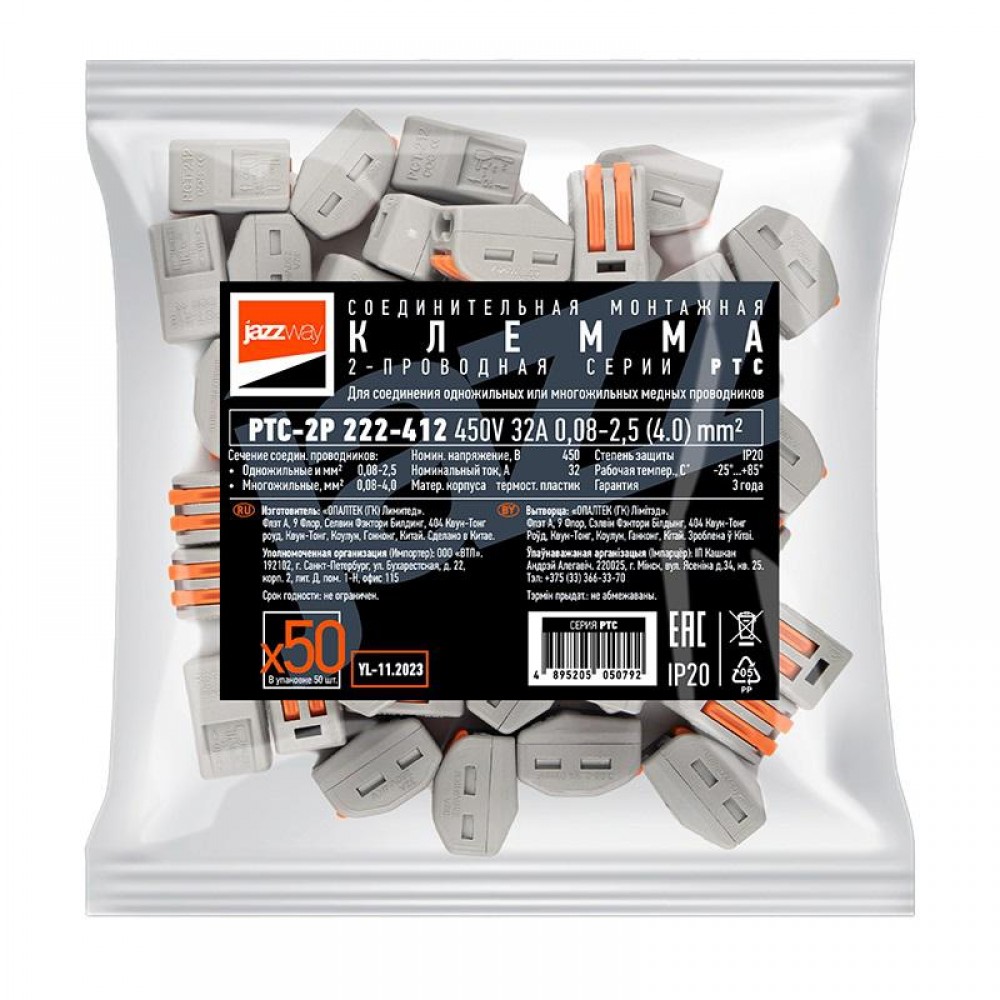 Клемма монтажная рычажного соединения PTC-2P 222-412 450В 32А 0.08-2.5(4.0)кв.мм Jazzway 5050792