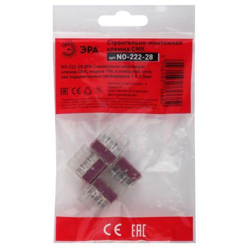 Технические характеристики Клемма строительно-монтажная СМК 106 NO-222-28 6-проводная 1.0-2.5кв.мм(уп.4шт) Эра Б0033401