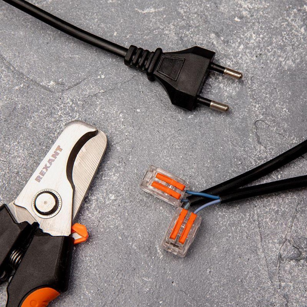 Соединительная многоразовая клемма REXANT на 2 проводника с плоско-пружинным зажимом в прозрачном корпусе предназначена для подсоединения медных одножильных и многожильных проводников тонкого сечения.