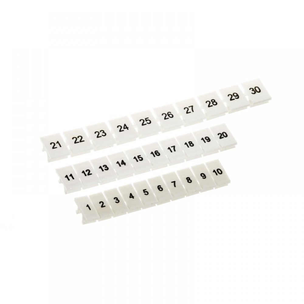 Маркировка для винтовых клемм "Nuputuk" и для фронтальной маркировки клемм VPR. Ширина 6 мм, белая с черной печатью от 21 до 30, горизонтальная ориентация, 1 шт. - полоса из 10 маркеров.