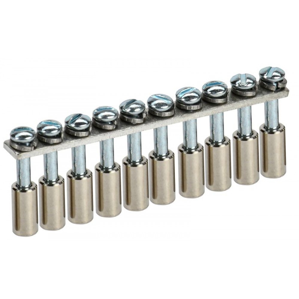 Винтовая перемычка состоит из токоведущей шины, втулок и винтов и представляет из себя готовое изделие для применения. Перемычка подключается при помощи встроенного винта к клемме через отверстие в середине клеммы. Они доступны в стандартной комплектации с 2, 3, 4 или 10 полюсами.