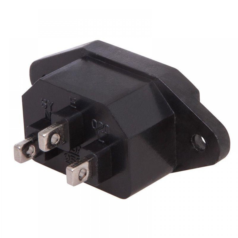 Cетевое гнездо на корпус используется для подключения оборудования к сети переменного тока. Штекер крепится к корпусу с помощью боковых винтов. Имеет три контакта: ноль, фаза и заземление, к которым с передней стороны подсоединяется сетевой шнур, а с задней — подключается оборудование.