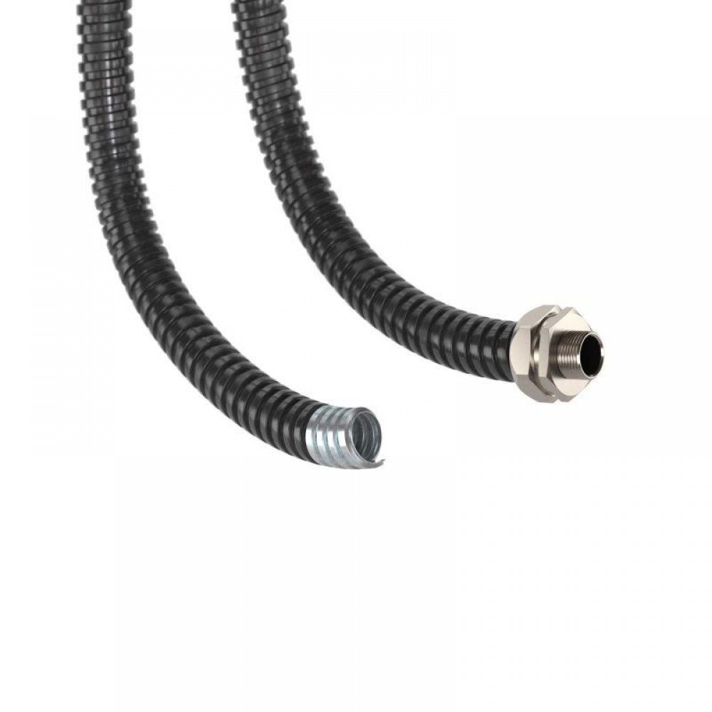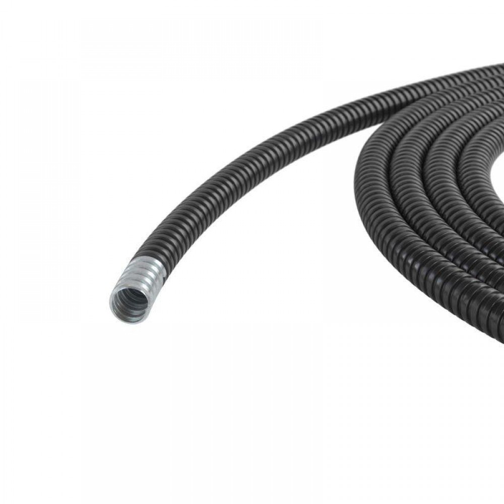 Гибкие металлические трубы могут прокладываться под удобным углом, что повышает адаптивность системы под различные задачи и облегчает монтаж. Отличительные особенности металлорукавов - гибкость и высокая прочность. Металлорукав в ПВХ-изоляции имеет высокую степень герметизации - IP 66/67 и промаркирован через каждый метр для удобства монтажа. Внутренний диаметр - 12 мм. Цвет - черный.