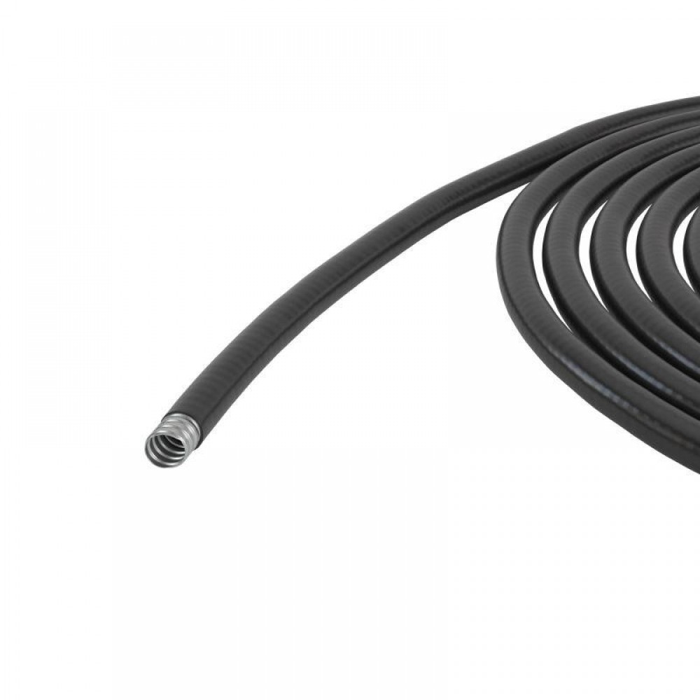 Гибкие металлические трубы могут прокладываться под удобным углом, что повышает адаптивность системы под различные задачи и облегчает монтаж. Отличительные особенности металлорукавов - гибкость и высокая прочность. Металлорукав в ПВХ-изоляции промаркирован через каждый метр для удобства монтажа. Внутренний диаметр - 20,5 мм. Цвет - черный.