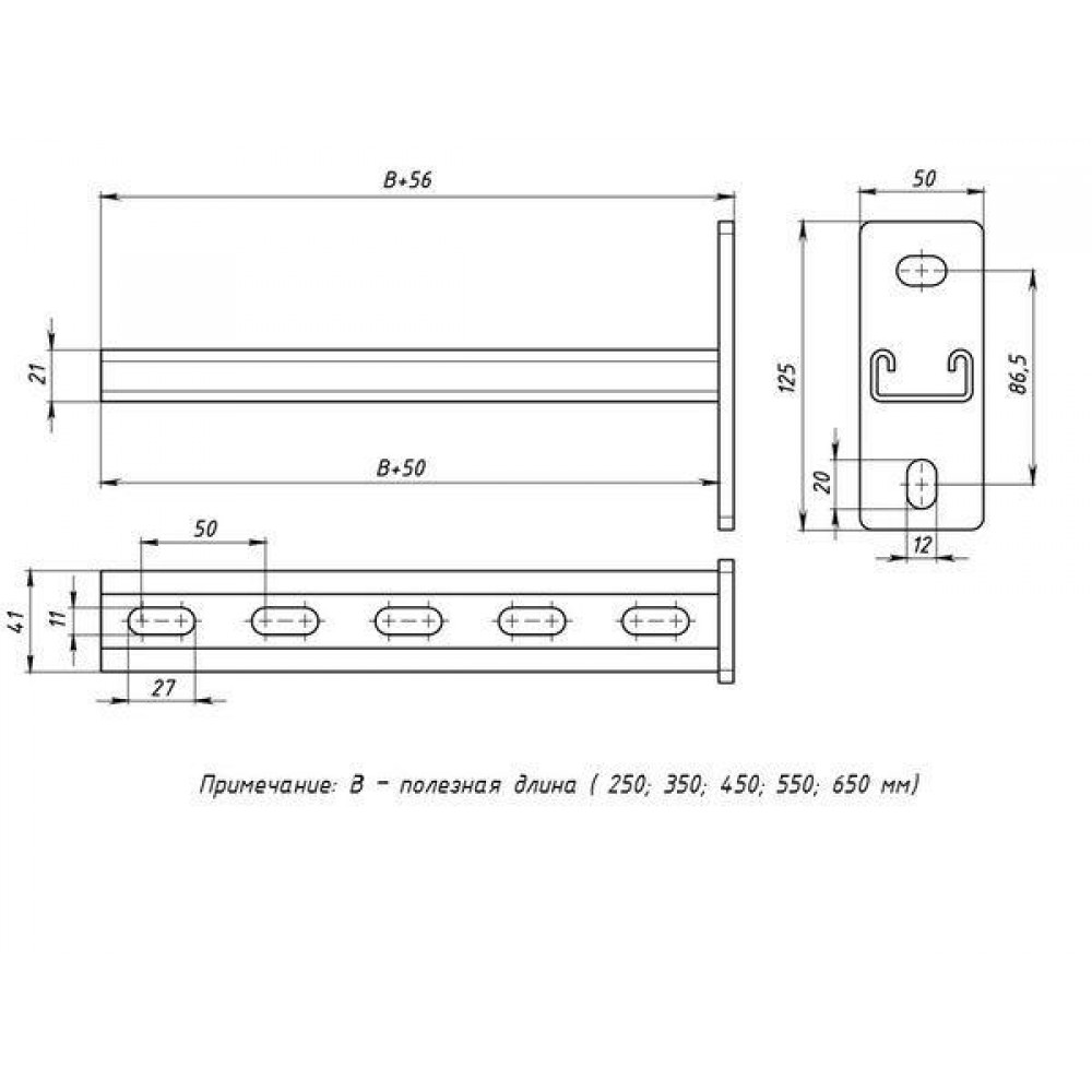 Технические характеристики Консоль STRUT 41х21 L550 сталь EKF stk412155