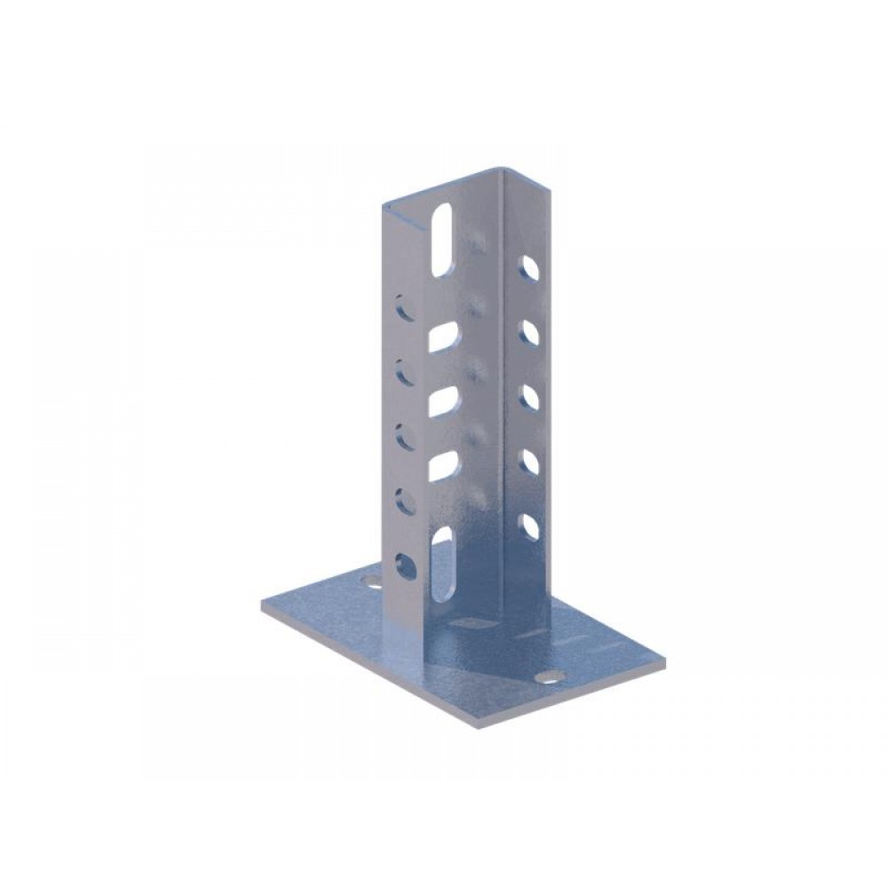 Монтажный кронштейн предназначен для крепления стоек кабельных и различных профилей к потолку, полу и вертикальным поверхностям. Способ монтажа: стойка или профиль крепится непосредственно к монтажному кронштейну метизами с резьбой М12.