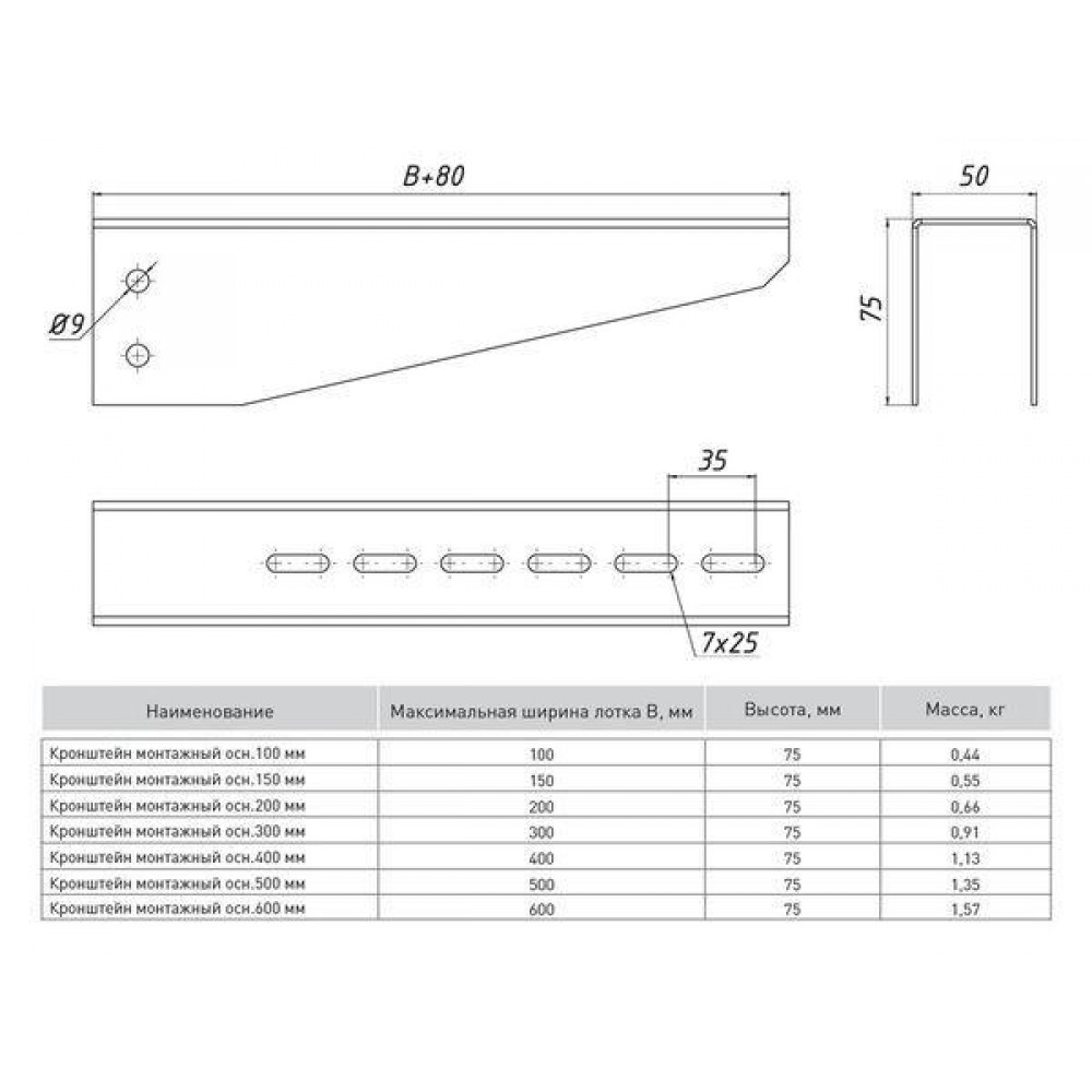 Технические характеристики Кронштейн монтажный осн.400 1.5мм сталь EKF km400